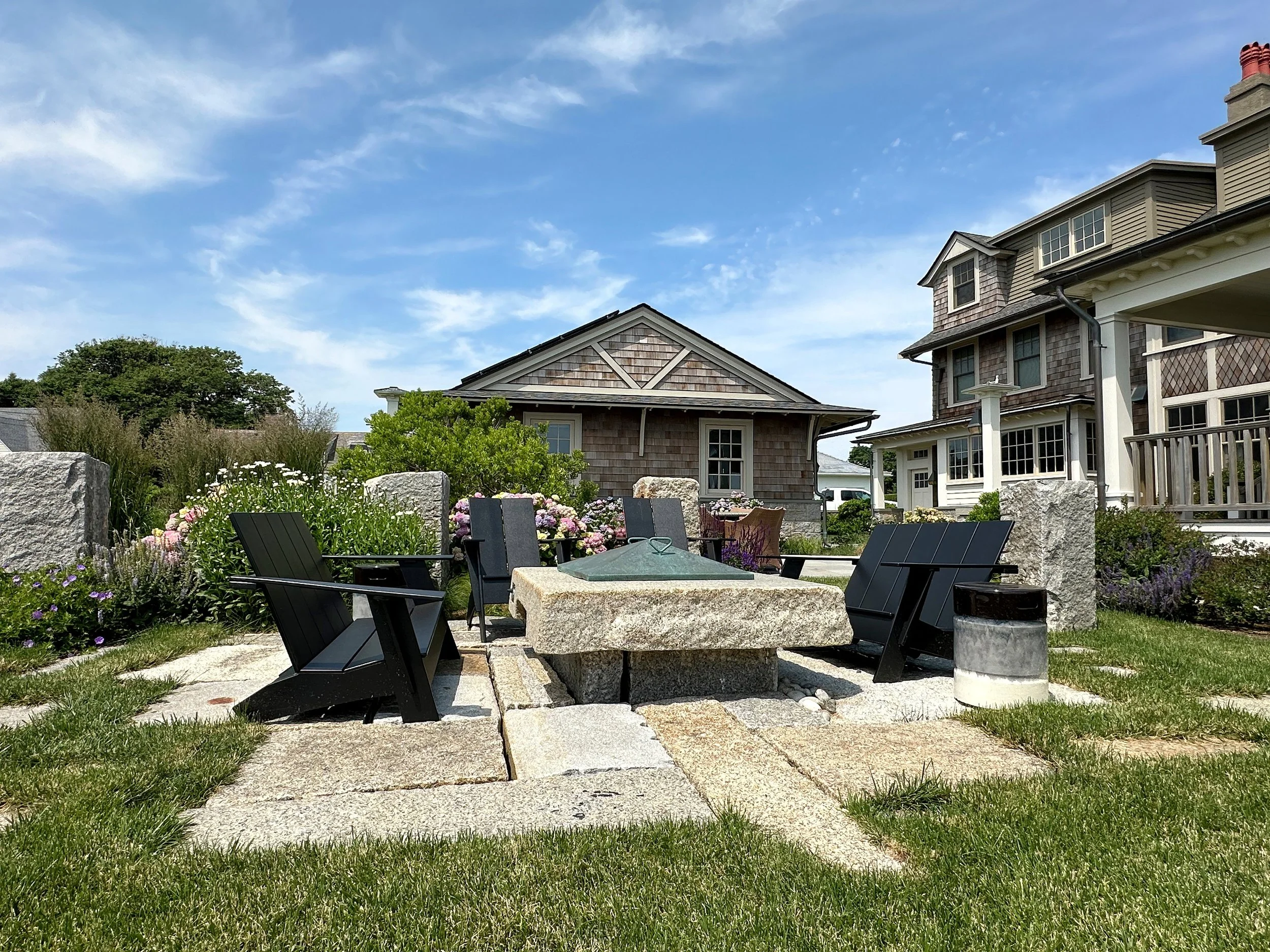 Originally an inn, this spectacular oceanfront property was thoughtfully restored and converted into a single-family residence. The land now plays host to a mix of exterior rooms ranging from intimate nooks to larger social gathering spaces, but all share a strong physical and visual connection to the sea. Stairs connect an upper lawn to the rocky coastline below. A flowing, textural border of native grasses and forbs spans the full length of the sea wall, offering erosion control, visual interest that changes with the seasons, and increased habitat for wildlife and pollinators.